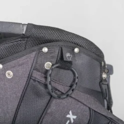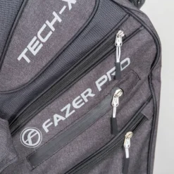 Up your game with the Fazer Pro Tech Stand Bag. With a graphite friendly 14-way separator top you have more than enough storage for your clubs. The easy to lift handles and 6 zippered pockets make it incredibly easy to use, including a velour-lined valuables pocket with a waterproof zipper. Padded dual carry straps and an extra thick hip pad provide improved comfort and the tempered legs are really easy to release. With an extra towel ring with velcro glove attachment, umbrella holder, scorecard sleeve, hydration sleeve and rain hood cover.