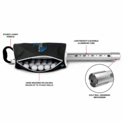 This lightweight and durable golf ball collector is the perfect partner when you are working on improving your game on the practice grounds or greens. It offers a simple solution to collect up to 75 balls at a time without the need to bend down and pick up your golf balls. It has a durable construction with a lightweight aluminium tube that features a golf ball grabbing mechanism. Complete with an ergonomic handle for comfort in the hand, and a zip opening in the bag to retrieve your collected golf balls. Complete with a free mini-series of Me and My Golf lessons from leading online PGA coaches Piers Ward and Andy Proudman.