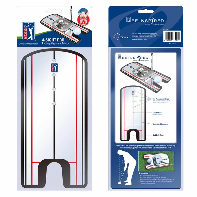 The PGA Tour 4-Sight Pro Putting Alignment Mirror provides visual feedback by showing where your eyes, putter face, and shoulders are in relation to the shot. Swing your putter through the target line to gain improved posture and consistency.