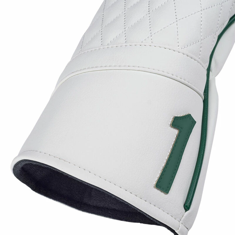 This driver head cover is a stylish way of protecting your number one asset in your golf bag. It is made from a durable polyurethane material with black felt lining that helps to protect the head from marking during transportation. The cover is highlighted with a stitched diamond quilt pattern, shield logo and a number 1 patch for additional style.