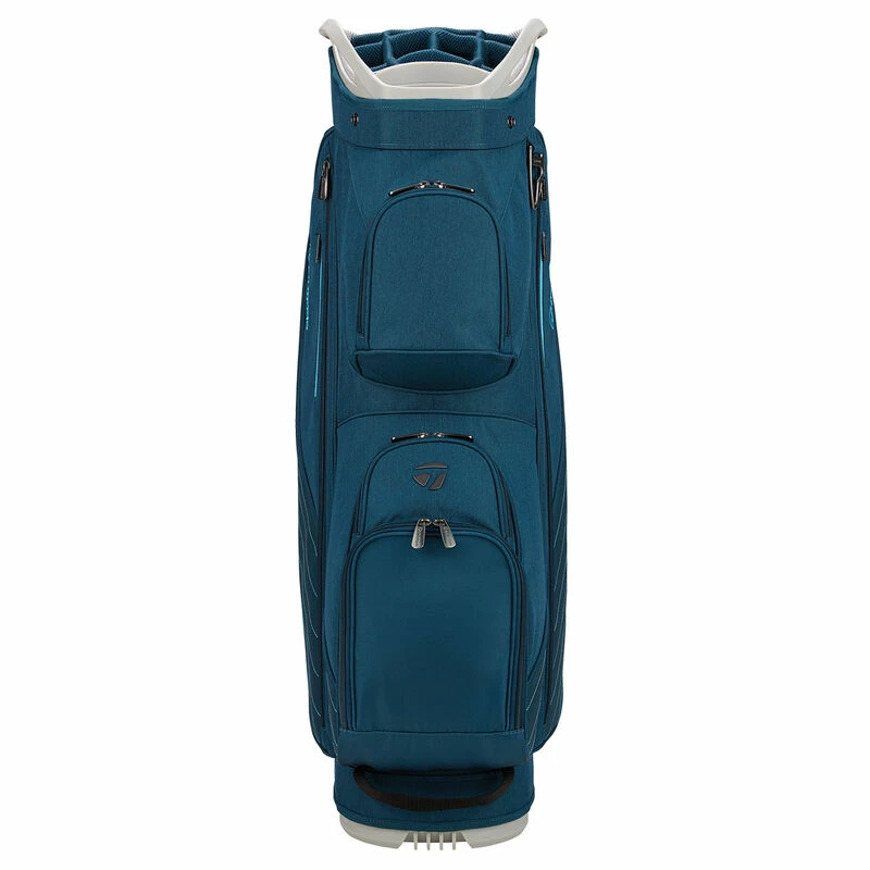 This golf cart bag features a 14-way divider system in a lightweight and stable design. This bag is perfect for the transportation of your clubs and gear from the car to the greens. Equipped with a dedicated putter well, and ample pocket spaces with upgraded metal zippers, this will be your go-to bag for the foreseeable future. The bag is constructed with a premium textured nylon body material and highlighted with a TaylorMade T-Bug logo with a smoke PVD finish.